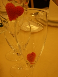 乾杯のグラスにハート型のイチゴがw